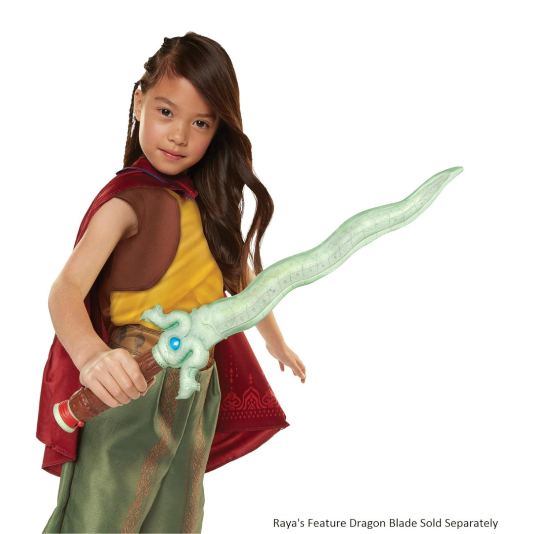 Incluye la clásica capa roja de Raya, inspirada en la película